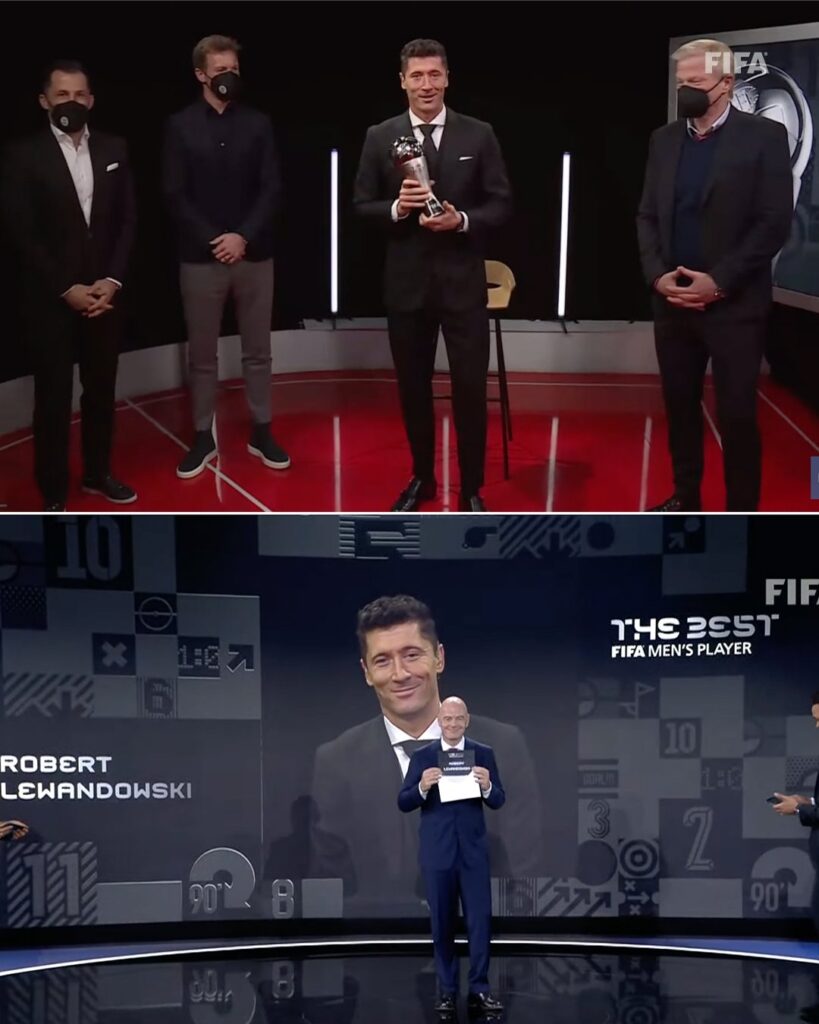 تفوق روبرت ليفاندوفسكي علي الأرجنتيني ليونيل ميسي، والنجم المصري محمد صلاح، وتسلم الجائزة من أوليفر كان المدير التنفيذي لنادى بايرن ميونيخ.